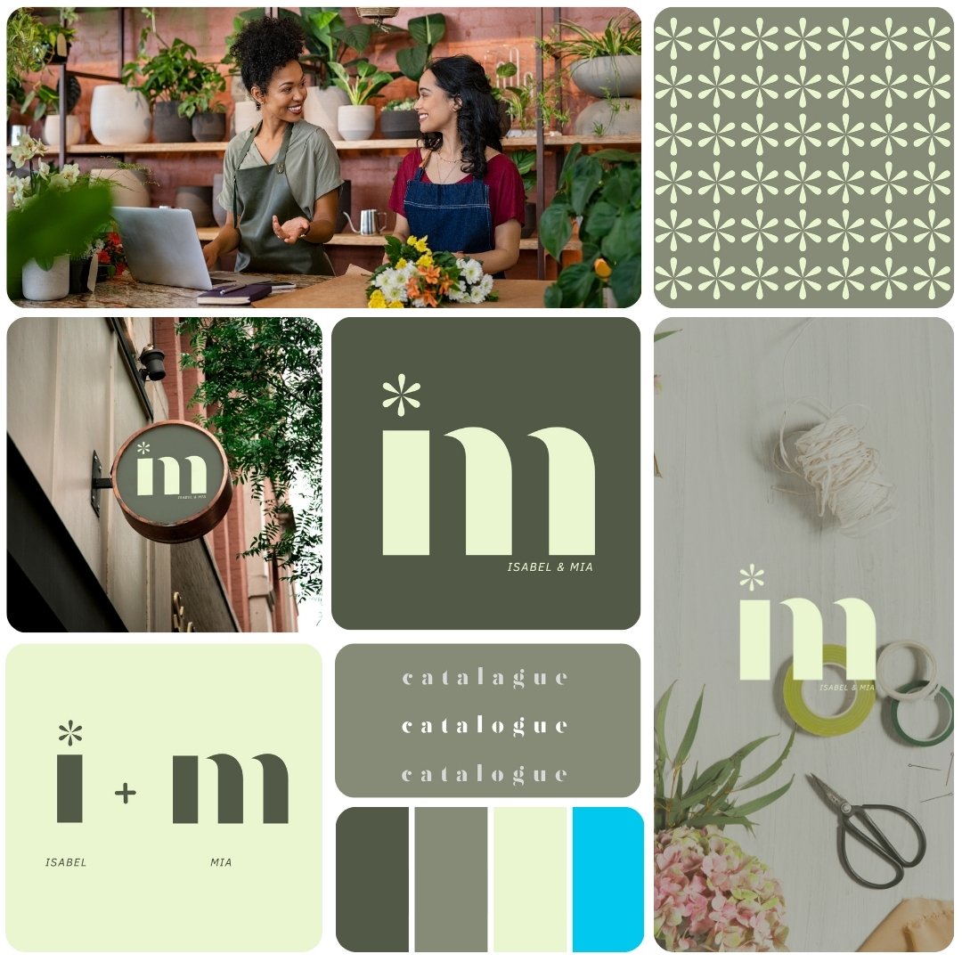 A modern and understated brand identity for Fleurist Isabel & Mia, rooted in organic elegance and quiet confidence. The logo combines soft, sculptural letterforms with a minimal floral symbol, creating a mark that feels both contemporary and botanical. The muted olive green palette paired with warm neutrals reinforces a natural, grounded aesthetic while maintaining a refined, premium tone.